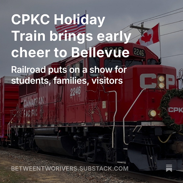For Christmas, here’s what I wrote after Thanksgiving about the Canadian Pacific Kansas City’s Holiday Train stop in Bellevue. Jackson County is the 14th county in Iowa I’ve written a Substack story from.
